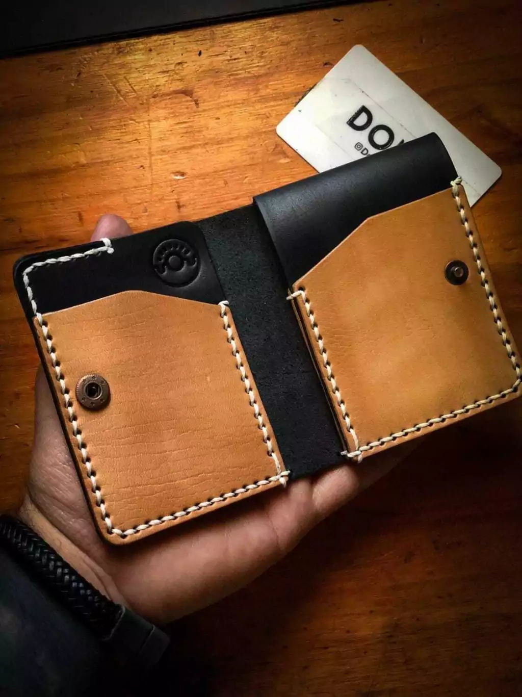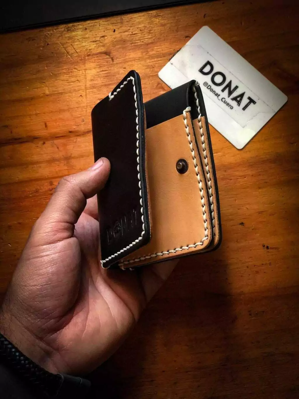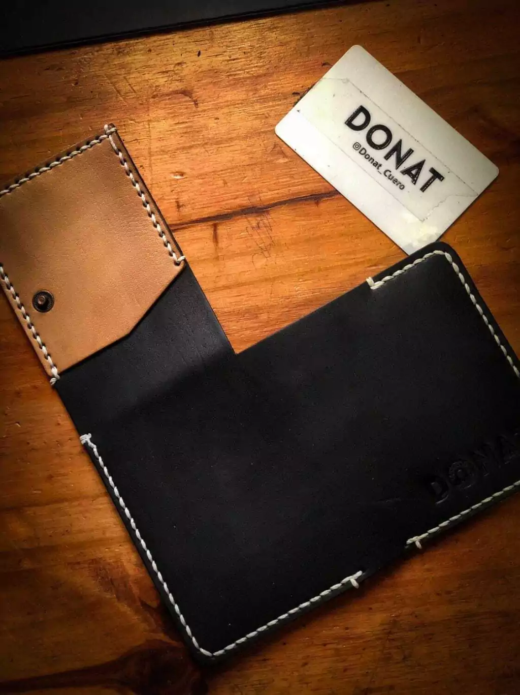 Billetera de cuero , con costura a mano. Gran capacidad de tarjetas y billetes doblados.